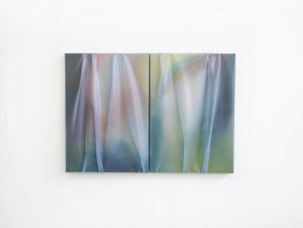 This new body of work comprises three distinct series, shifting between minimal, gestural, and sculptural approaches. Incorporating materials such as oak, linen, oil paint and silicone, Steyaert invokes the organic and man-made qualities of the garden while exploring themes of beauty, chaos, and control. Her continued use of silicone acts as a “smokescreen” over painted canvases, allowing diffused glows of color to ebb and vibrate beneath a frosted draped surface.