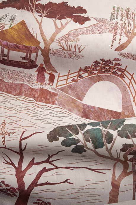 Pictalab’s latest collaboration is a journey through time and culture, where design becomes a vessel for stories shaped by women, history, and imagination. The first chapter of their new collection, Il Viaggio delle Imperatrici: Bringing Stories to Life Through Design, created with Nathalie and Virginie Droulers, is set in 16th-century China. After Laverne reimagines painter Xu Yang’s depiction of Emperor Qianlong’s journey through the southern provinces. Inspired by ancient civilizations, the design evokes the look of engraving, with a vivid landscape and characters subtly hidden within the scene.