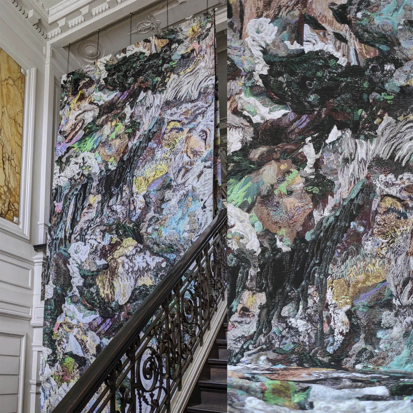 Materials: Jacquard weaving and hand embroidery