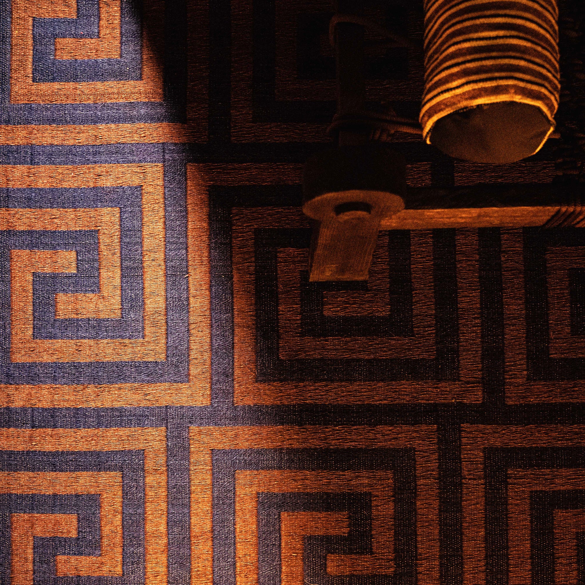 Made of Ocean Blue and Red Brown Agave, the Labyrinthe Rug combines strong geometric structure with subtle, immersive patterning. Its design fills the room gracefully without overwhelming the space, evoking the magic of an enchanted forest. Inspired by childhood labyrinths and fairy tales, it brings the wonder of the outdoors inside, creating a sense of mystery and playful exploration within any interior.