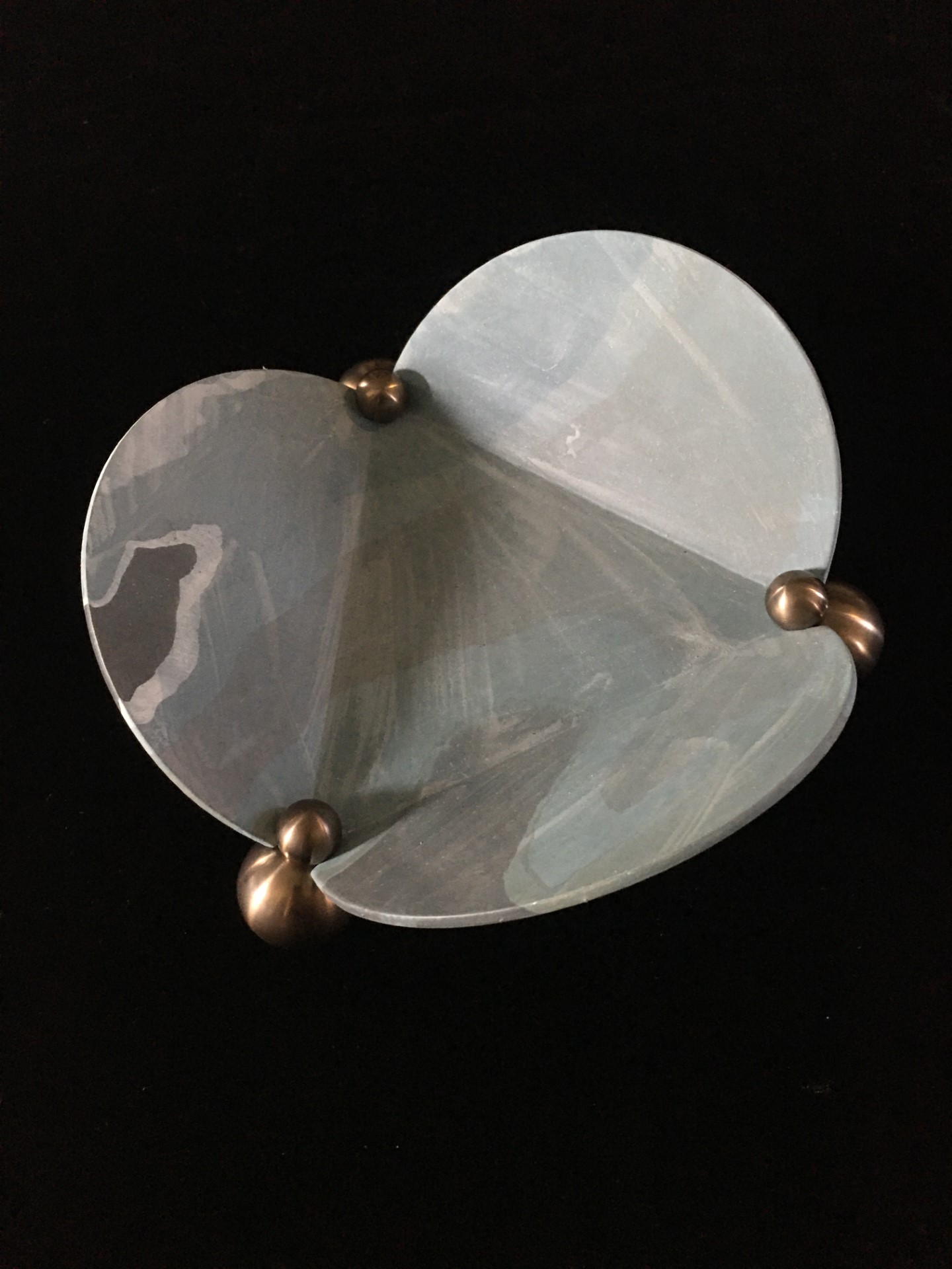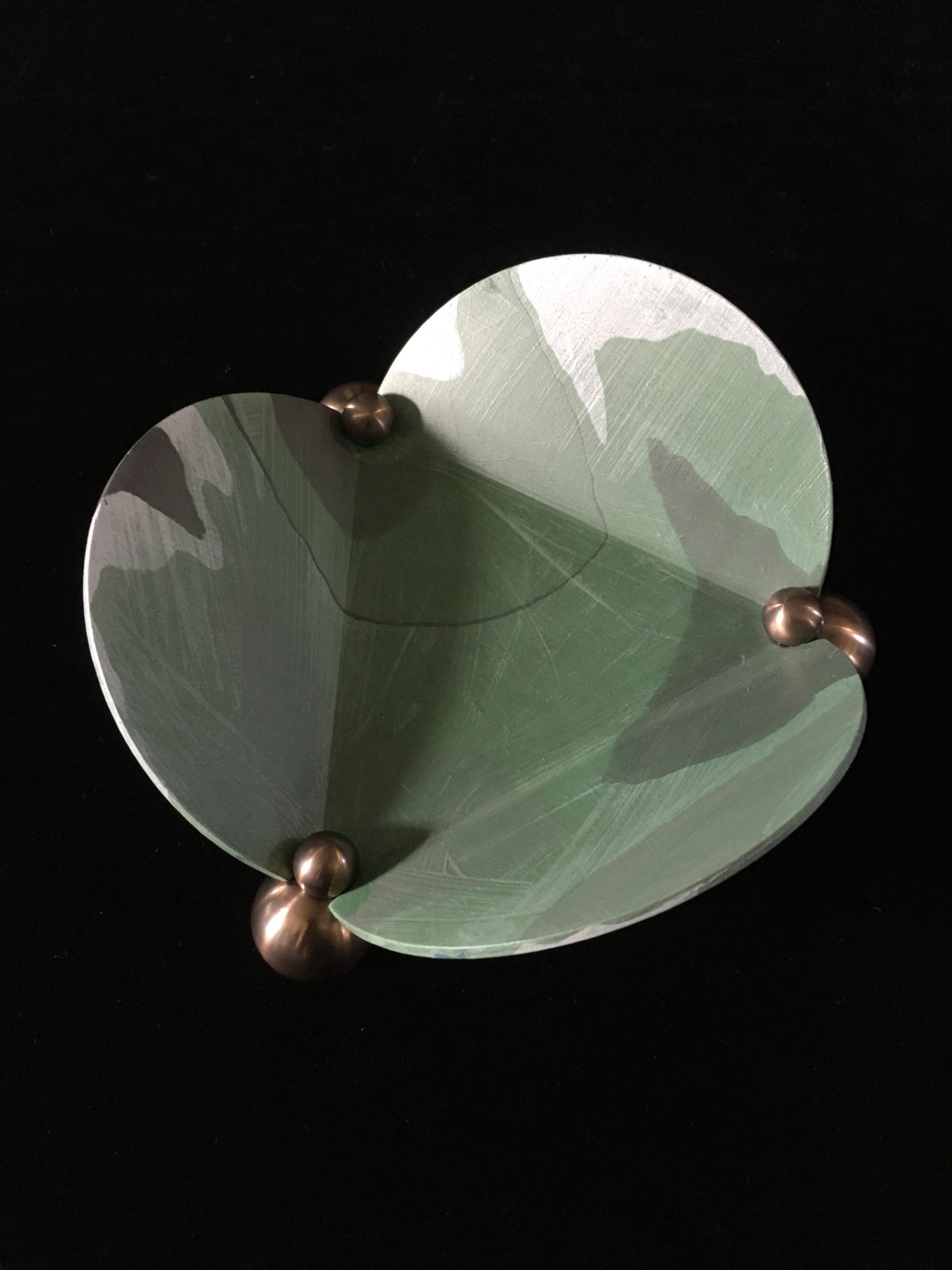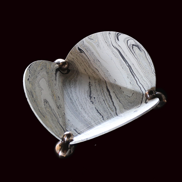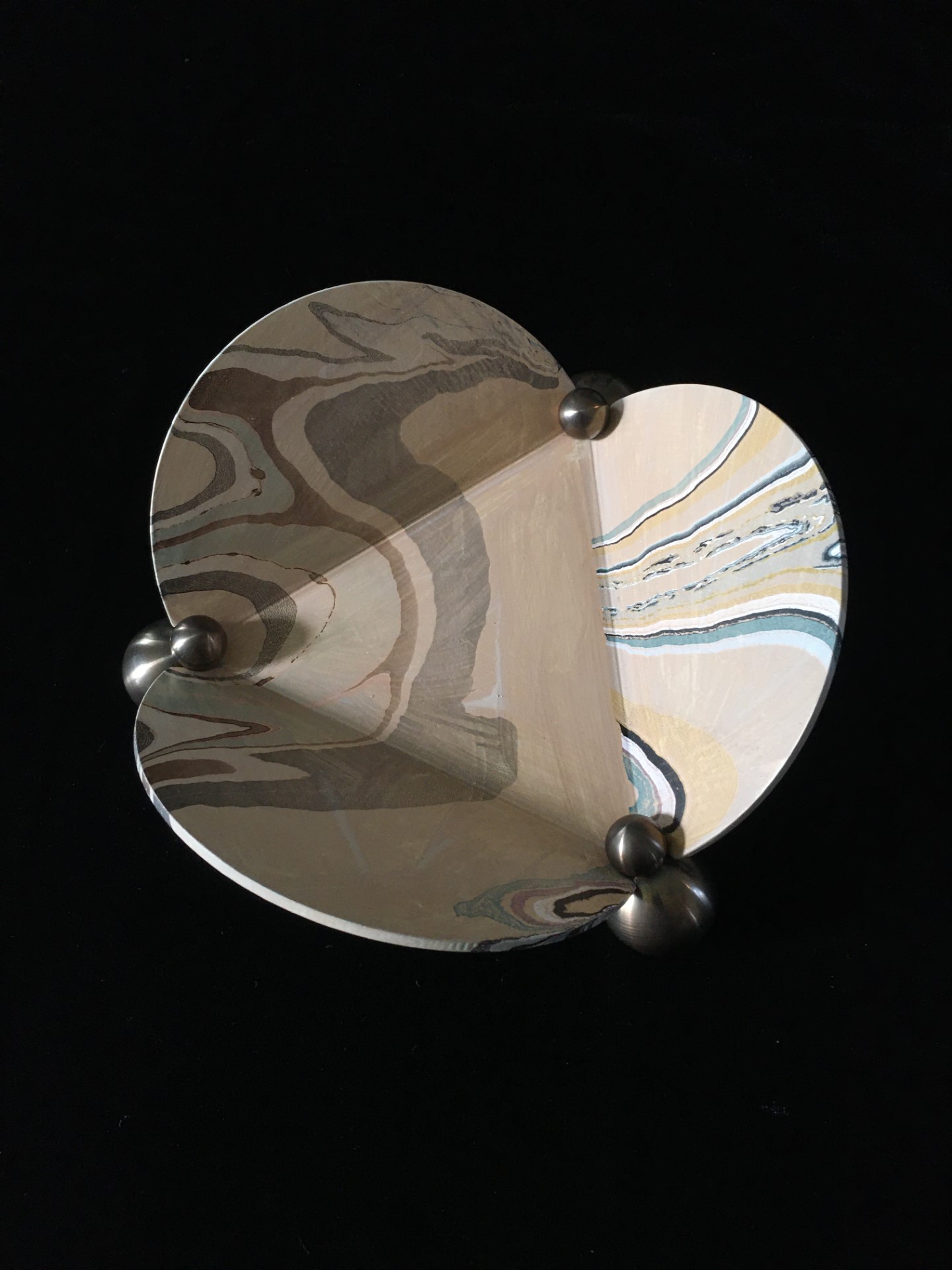 With their linear folds and petal-like curved edges, bowls and platters from Simon Leah offer sculpture and function in one. While the bodies are made of marbled aluminium, the finials and feet are rendered in brass. “These fall under the umbrella of ‘Ungapatchka,’” Leah explains, “my long-term project exploring the excessively ornate – with a leaning toward the vulgar!”