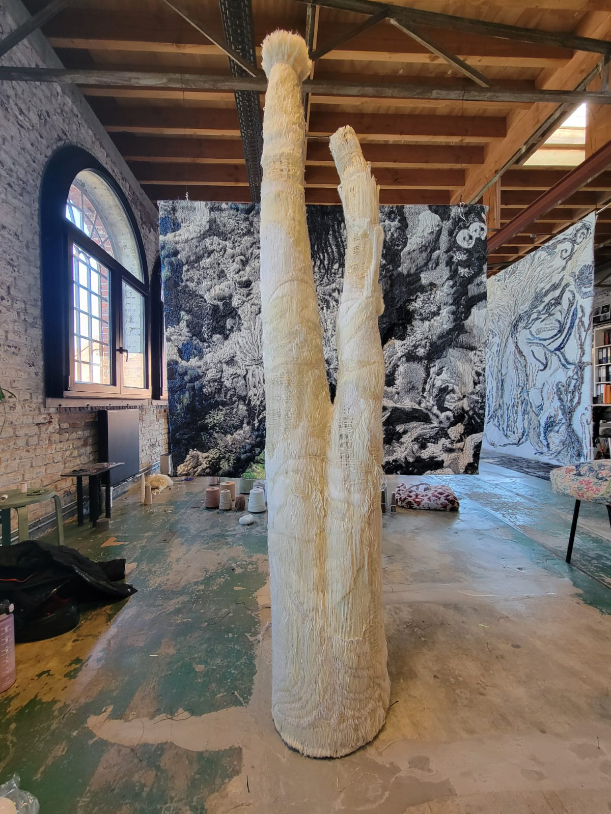 Materials: Weaving: wool, mohair, paper, raffia, cotton, polyesters